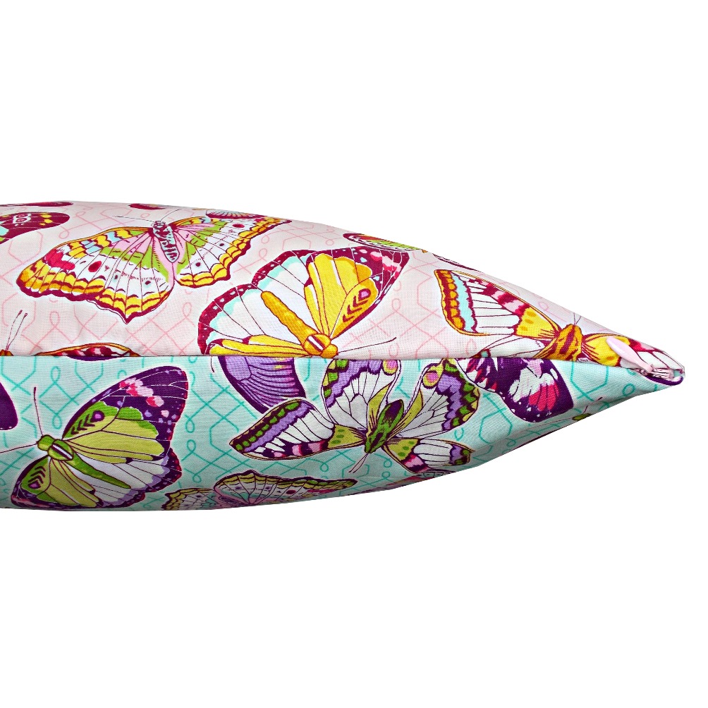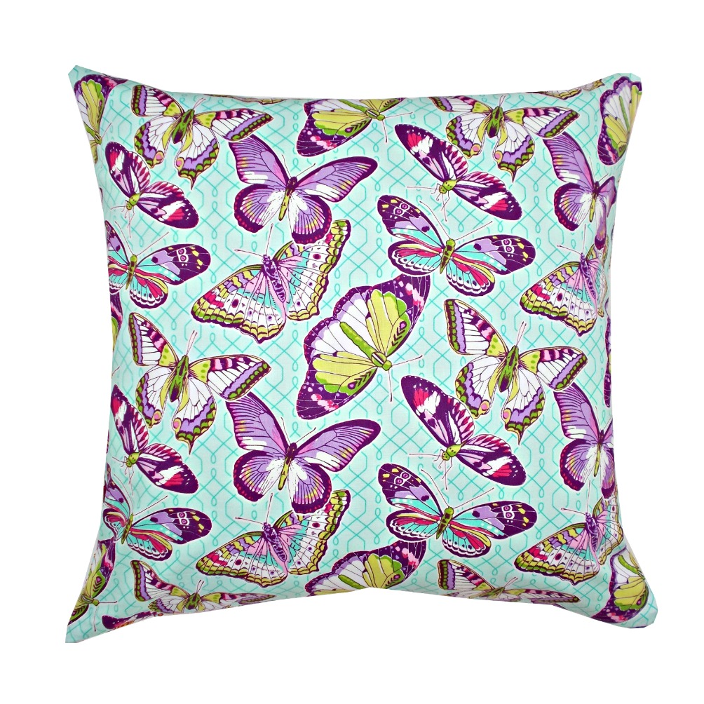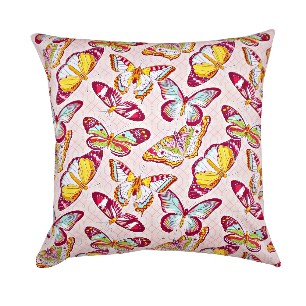 Aceasta fata de perna decorativa cu fluturasi este potrivita pentru a imbraca o perna 40 x 40cm cu umplutura la alegere.