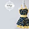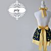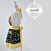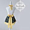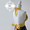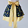 De la brâu în jos, este creat din două straturi diferite din material de bumbac, frumos asortate și care ”cad” precum o rochie în stil vintage. Un prim material este din bumbac imprimat cu lămâi pe fond bleumarin. Al doilea este uni, de culoare galben. Șorțul este prevăzut cu două buzunare laterale dublu căptușite și accesorizate cu dantelă.